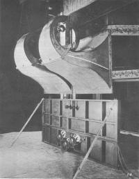 The first result of Lansing Manufacturing's work was the 15XS field coil bass driver. It was a rugged, efficient, high precision unit using a seamless paper cone attached to a 2" round wire voice coil. The original high-frequency driver that they developed for this project was the 284, which was also a field coil unit using a 2.84" flat wire voice coil attached to a 2.84" aluminum diaphragm. An annular slit phase plug was employed in back of a horn throat that had a 1.5" exit diameter. After initial development, a concern was raised that the use of an annular slit phase plug may be in violation of Bell Lab's patent on the WE594 driver. Dr. Blackburn undertook a redesign of this phase plug to a radial slit configuration. Thus was born the 285 driver that was ultimately used in the production systems. Hilliard continued with work on the bass module configuration. By this time he was leaning towards the horn alternative, but envisaged a direct horn path. Both RCA and WE became aware of the Shearer Project and were now interested in participating. RCA's Harry Olsen suggested using one of their folded horns. This had the advantage of significantly reduced size, particularly in depth for use behind a projection screen. Hilliard was quick to adopt this design as the basis for the Shearer Horn. By 1935, a prototype was in place using a re-entrant low frequency horn powered by four Lansing 15XS drivers. On top of this was mounted a multicellular horn designed and built by Stephens. It should be noted that Stephens developed a number of multicellular horn patterns depending on the requirements for individual theaters. Hilliard felt it was imperative to avoid the problems of multiple horn overlap. Therefore, horns with cell patterns of 2x4, 2x5, 2x6, 3x3, 3x4 and 3x5 ( all using a 17° x 17° dispersion cell) were developed for use in differently dimensioned theaters. A single Lansing 284 compression driver was initially employed on these horns. The new Shearer system was now ready for testing and it proved an unqualified success. The bass horn configuration contributed to an overall system efficiency near 50%. The bass horn sensitivity so closely matched that of the high frequency unit that no more than 2 db of attenuation was required. It achieved a flat frequency response of +/- 2db for a bandwidth of 50-8,000hz. The position of the 284 driver, in relation to the position of the bass drivers, had been carefully designed to result in a phase delay of no more than 1 millisecond.