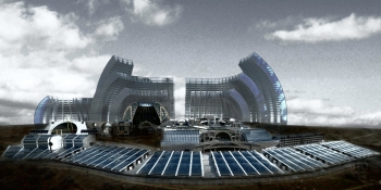Arcosanti, wth construction since 1970 is located 70 mi north of Phoenix, AZ. His arcology concepts dictated use of design pragmatically within the site conditions and available construction