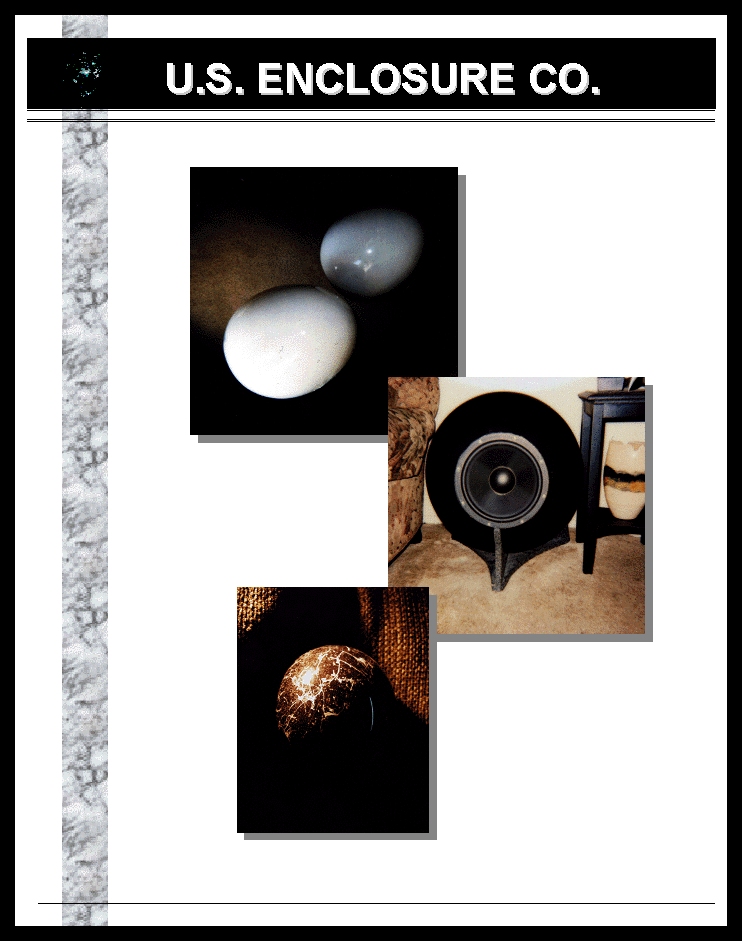 editing software and was located at http://www.aol.com/kmetaverso. US Enclosure has a 20 Year permanent web and internet presence. 36" pair of Spherical Loudspeaker enclosures for JBL 18" woofers designed by Metaverso, then manufactured and shipped to a client in Michigan. The Largest curved loudspeaker enclosures ever commercially produced. |